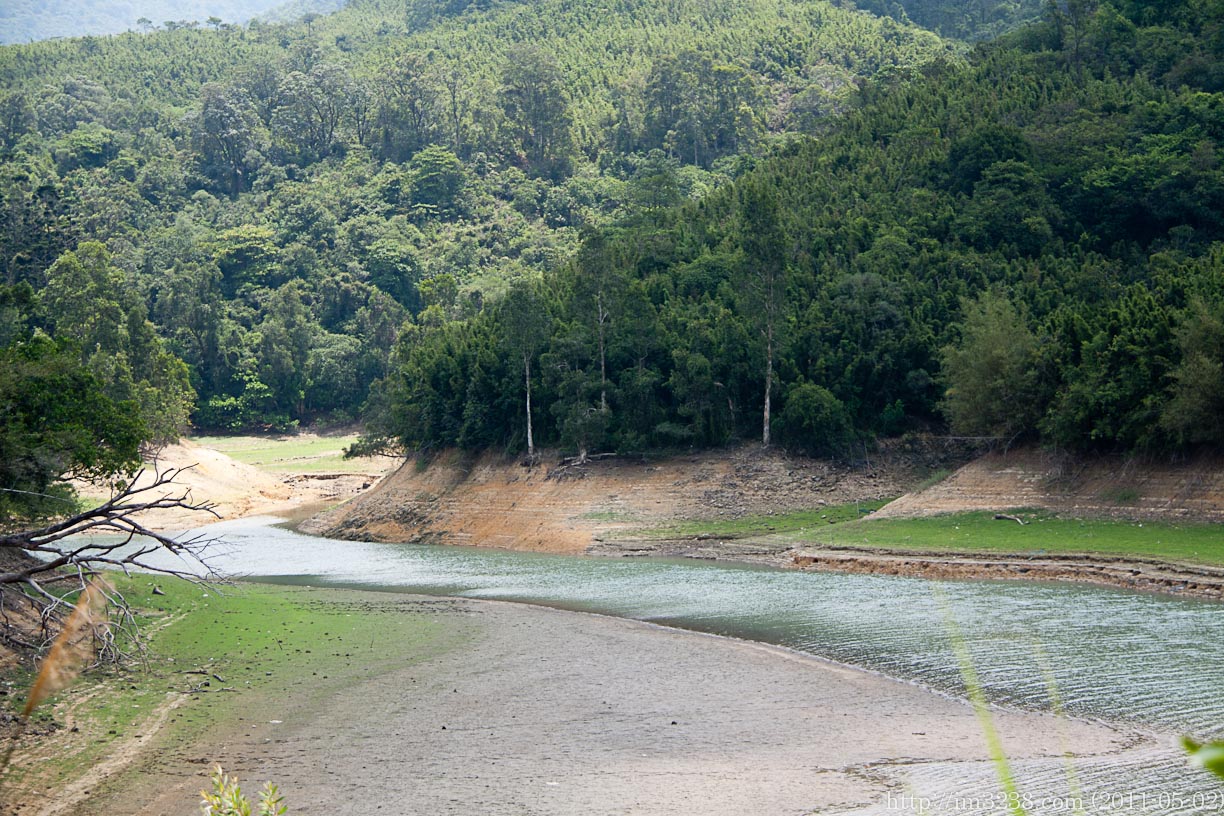 經過幾道梯級後,我終於走畢水塘的一段路。據指示牌向左走便抵達目的地,沒多久看見水塘主壩。若橫過主壩,只要多走一小時便會到達小欖,不過我還是依照原來的路往掃管笏。此時我心裡的謎終於解開了,原來漁護署在2009年修改麥理浩徑第十段的路線,我剛才所走的羊腸小徑已不屬於麥理浩徑的一部分,我估計部分遠足人士覺得這路太迂迴,或是漁護署讓給越野單車手使用。有機會的話,我必須更換一份新的地圖。